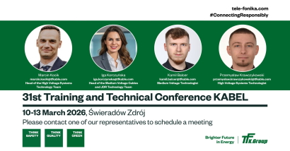 During the 31st Training and Technical Conference “Power Cable and Overhead Lines” KABEL 2026, which will take place from 10–13 March 2026, the TELE-FONIKA Kable team will actively participate in the event, presenting the latest technological advancements and solutions supporting the development of modern power engineering.